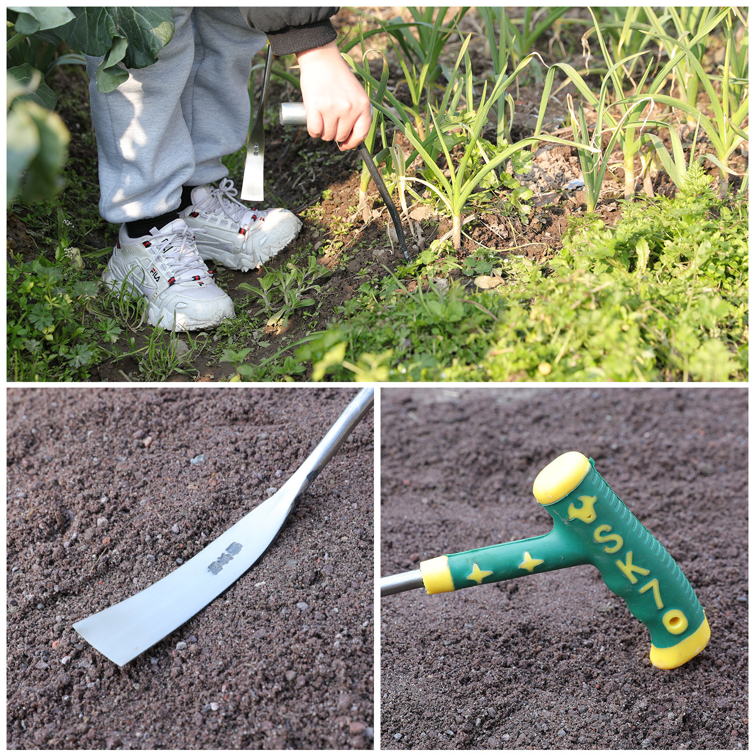 Glue put the garlic seedlings shovel