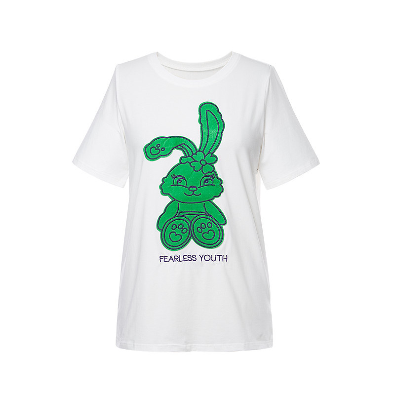 MSShe big size women's dress 2022 new summer dress fat mm loose comfort cloth with embroidered ice porcelain cotton medium long version t-shirt