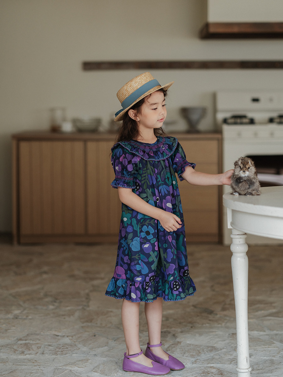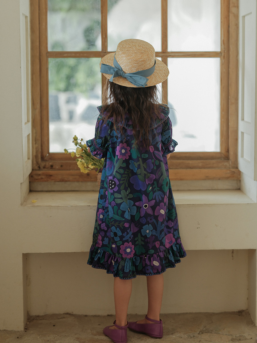 Olinali original 39 ° C cool summer series ultra extravagant 100 Xinjiang long suede cotton blue purple crushed flower foreign dress