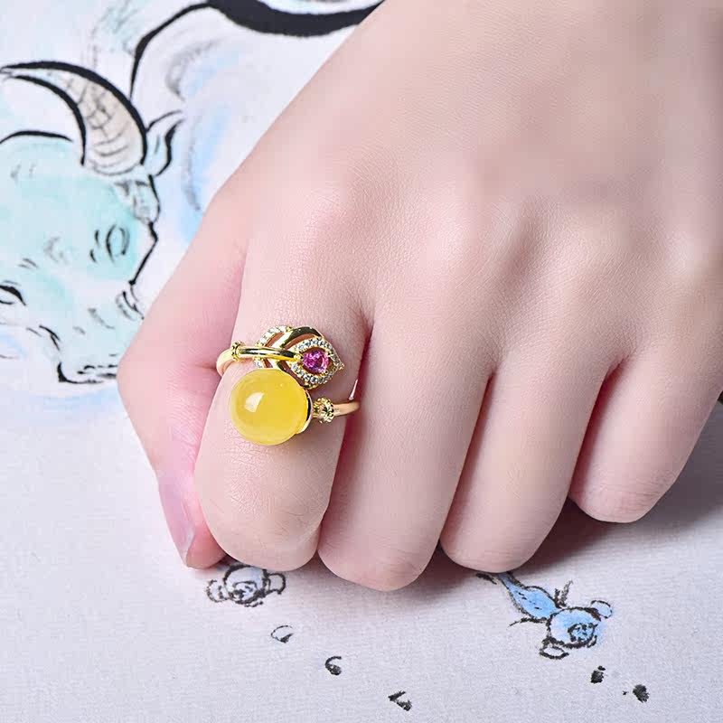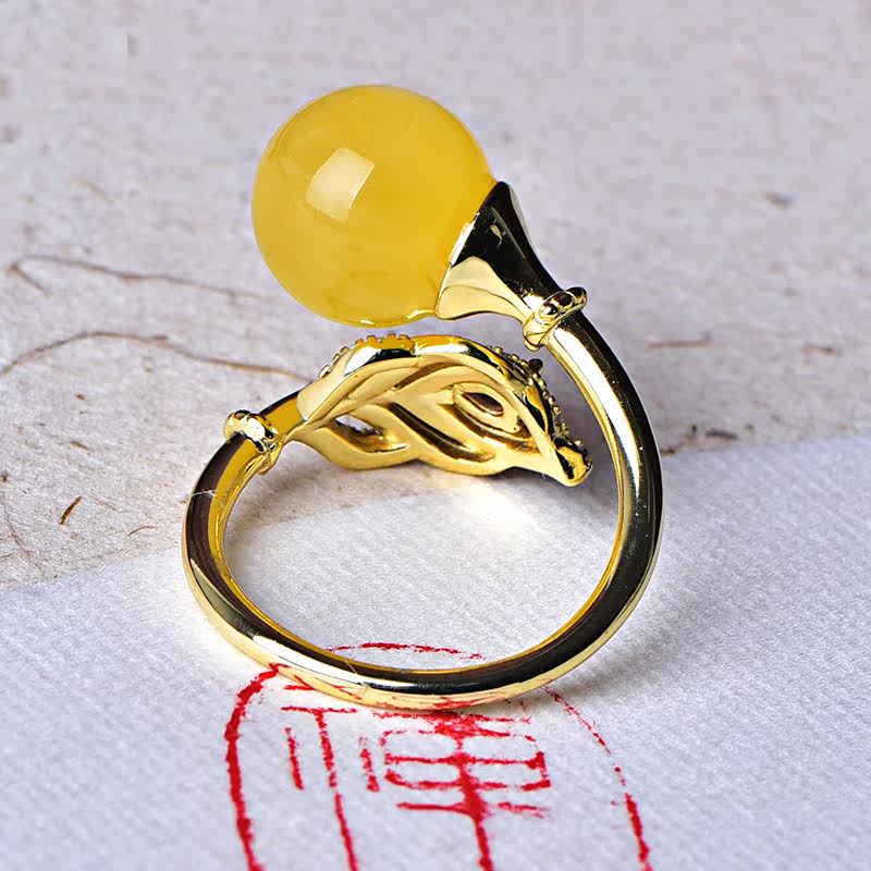 Zhengya jewelry natural beeswax bead ring chicken oil yellow old honey 925 silver gold-plated women's spot