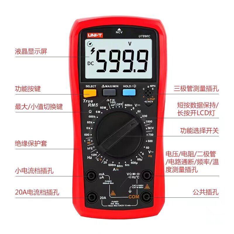 Uliid UT890D UT890C multifunction test temperature capacitive voltage digital intelligent anti-burn universal table-Taobao