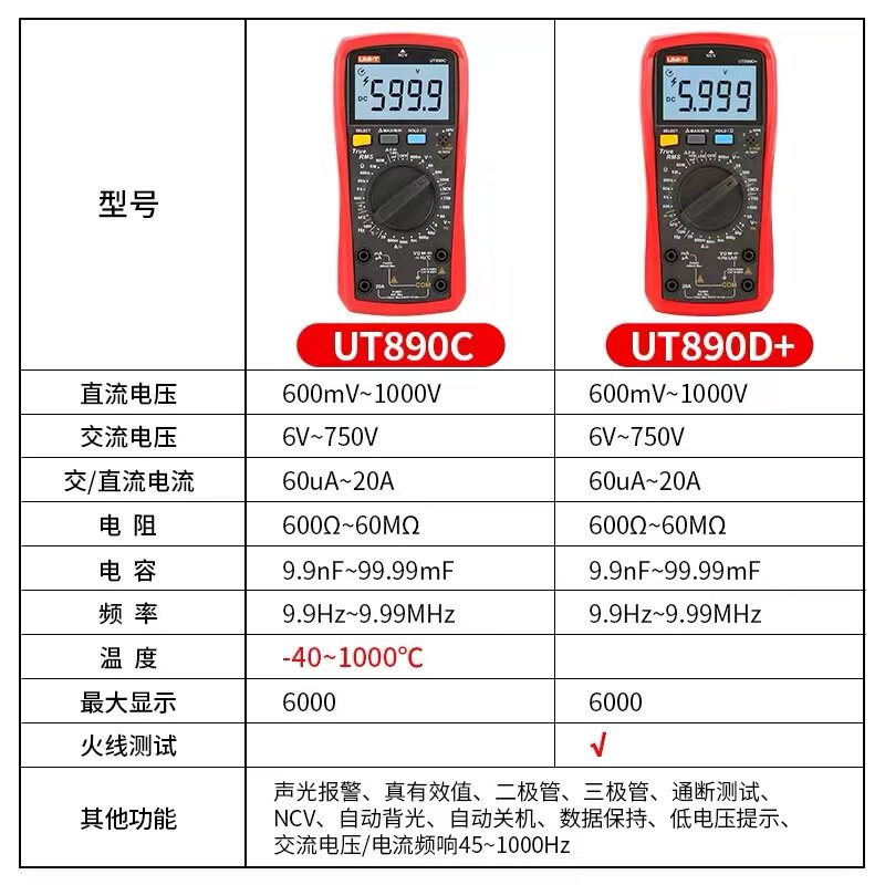 UT890D (fire wire judgment true effective value) UT890C (temperature measurement real effective value) UT89X (fire wire judgment temperature measurement) UT89XD (LE)