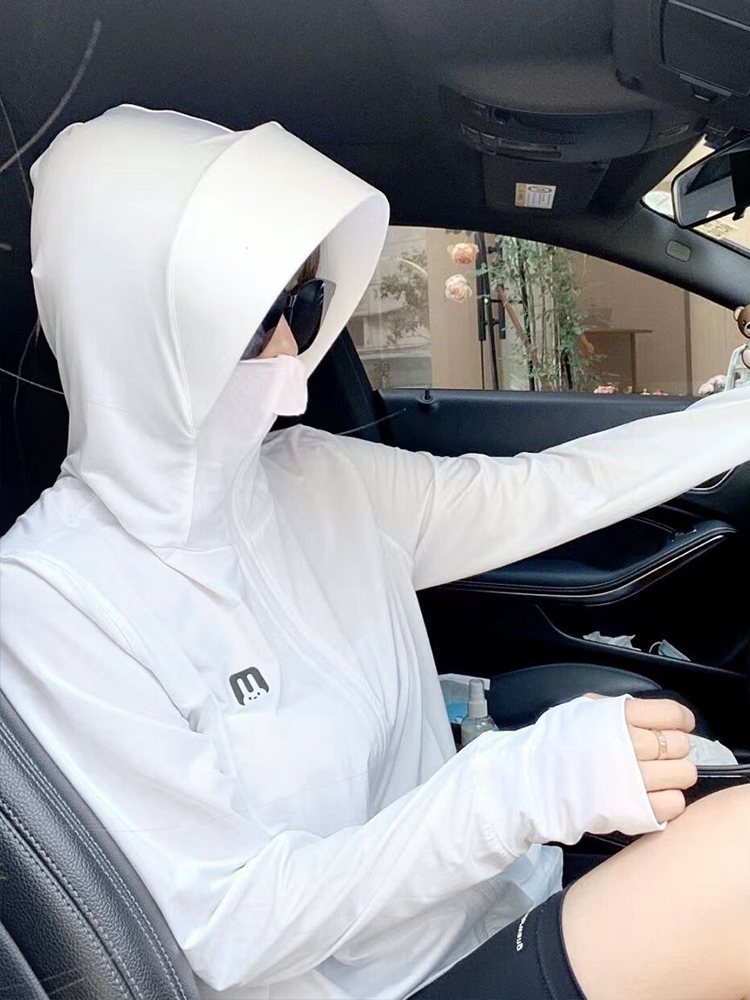 Summer ice silk sunscreen women's thin coat 2021 new long-sleeved blouse cardigan hooded breathable cycling sunscreen clothing