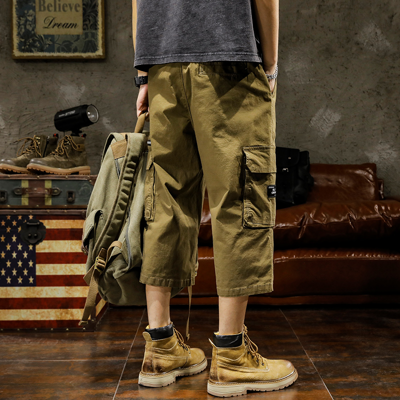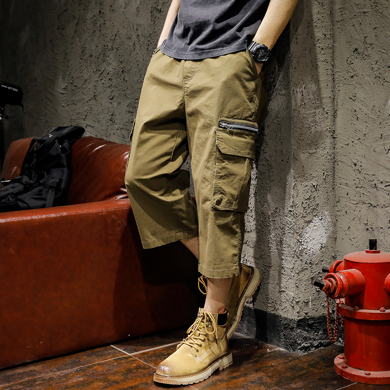 American board-card overalls 7-pants men's horse pants loose big code Summer guys casual 7-minute shorts 80% pants-Taobao