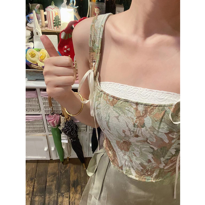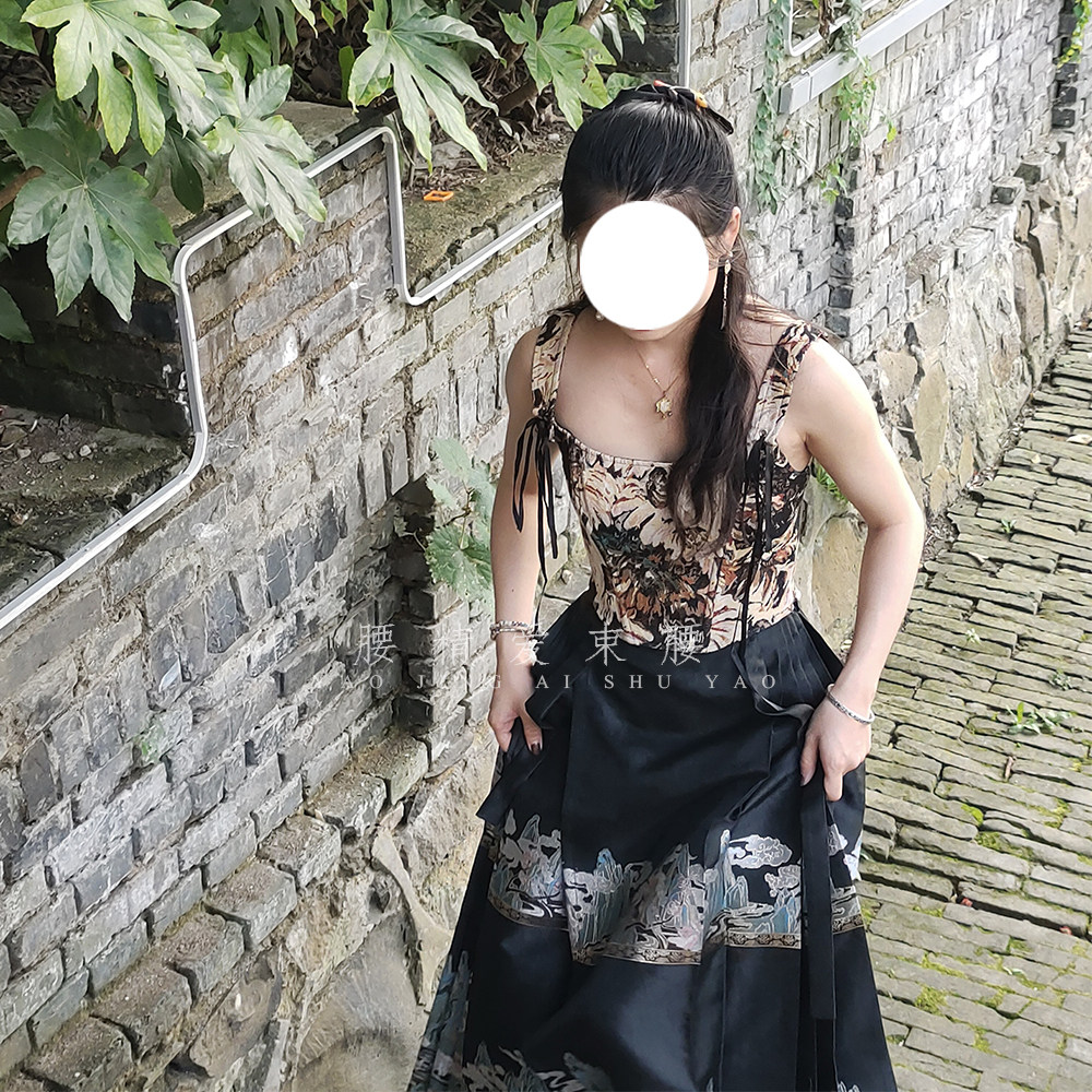 Oil Painting Printed Vest Woman Outwear Spring Design Sensation Small Crowdfish Bone Chest Clot Sexy Sweet Butterfly Knot Short blouses-Taobao