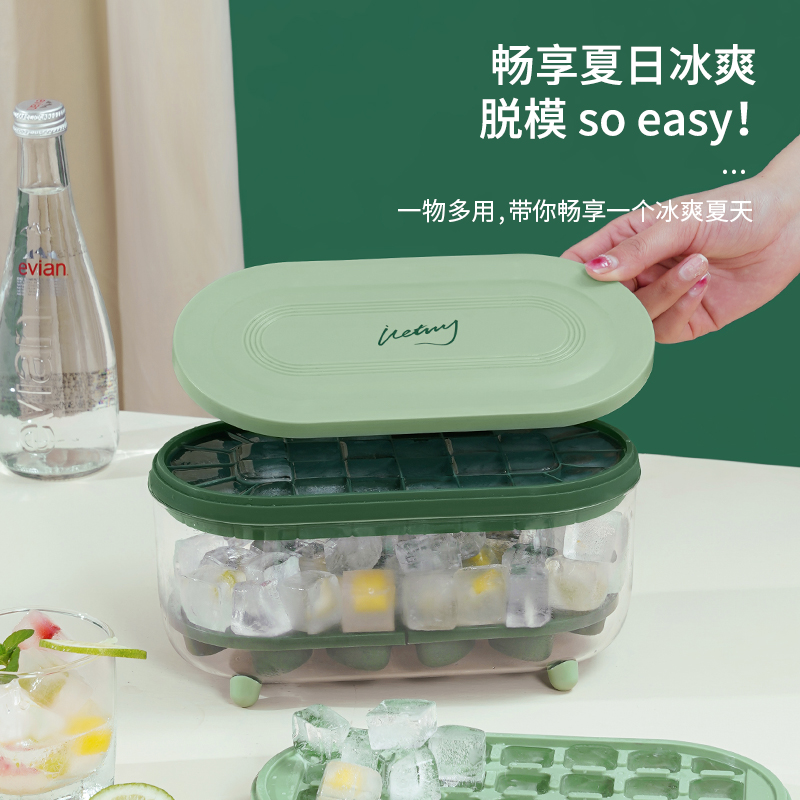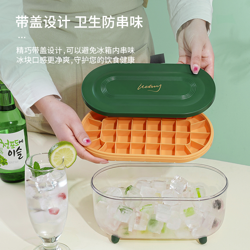 Ice cube mold large-capacity ice-making silicone ice tray household ice storage ice-making box with lid DIY homemade ice cube artifact