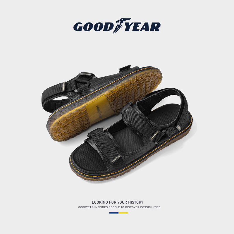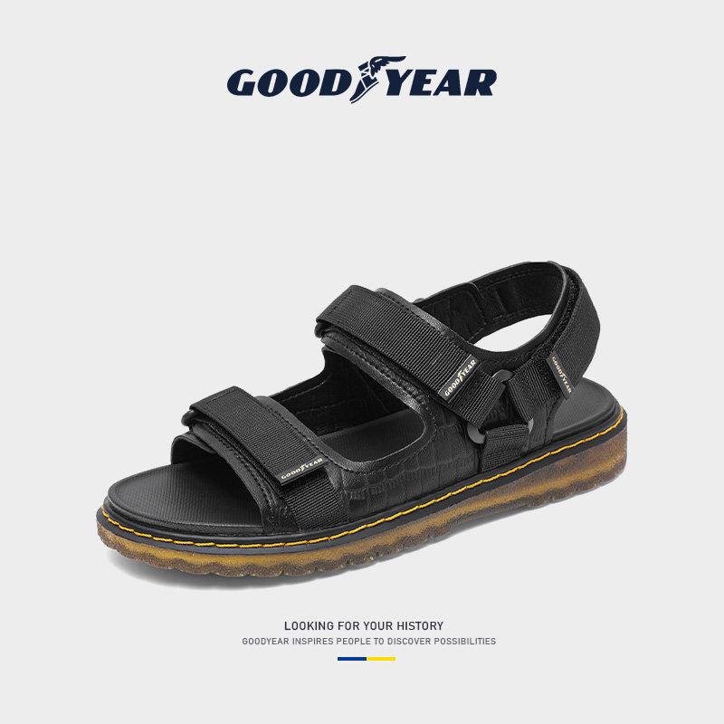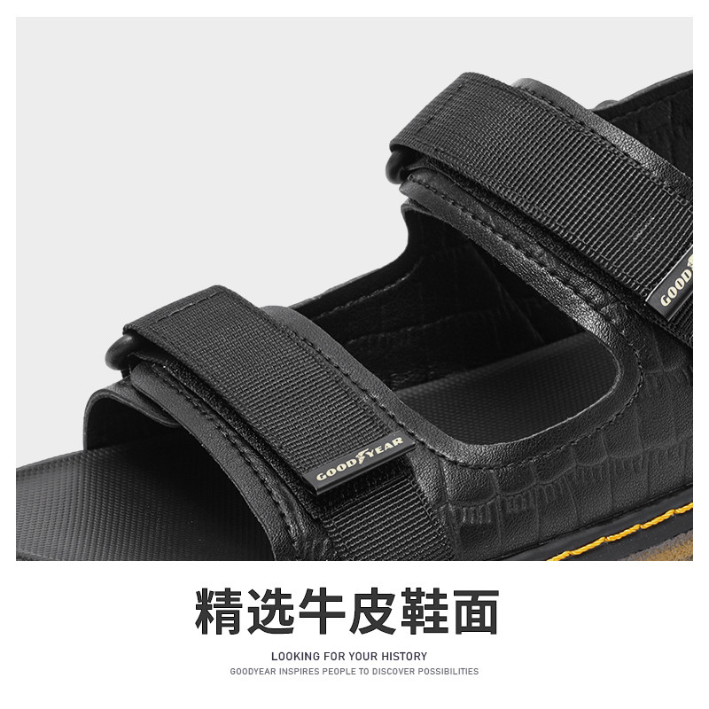 Goodyear Genuine Leather Sandals Men's Summer New Trends Soft-bottom Dual-use Beach Shoes Men Drive Outside Cool Slippers