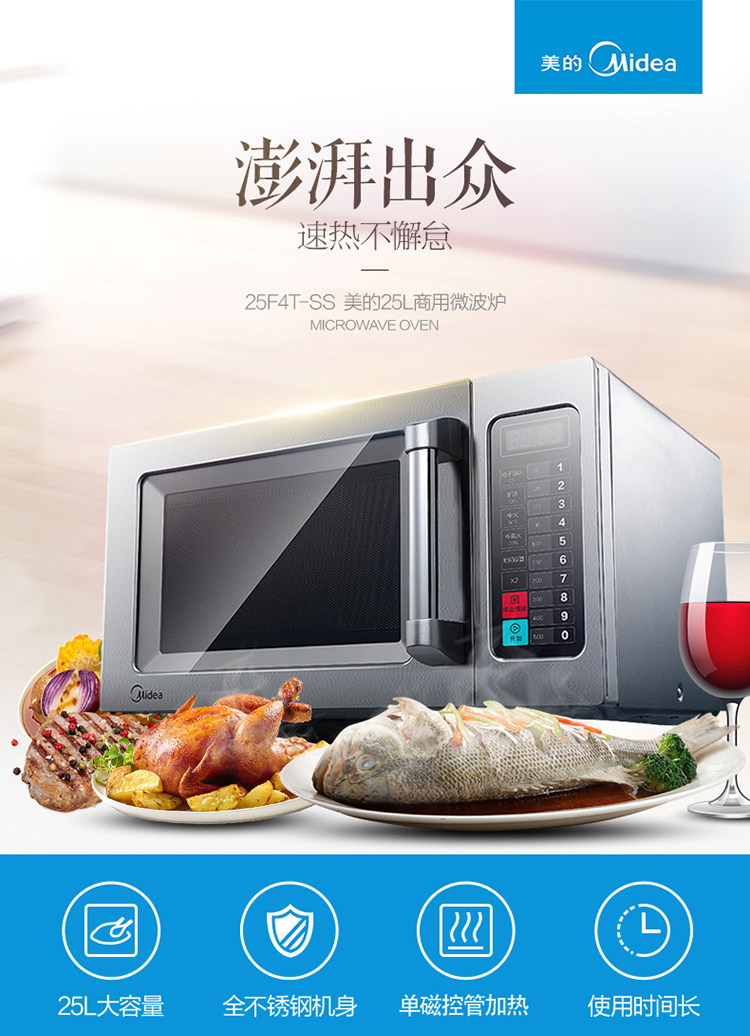 Midea EMA34GTQ-SS commercial microwave oven super large capacity high power 1800W hotel convenience store solution large