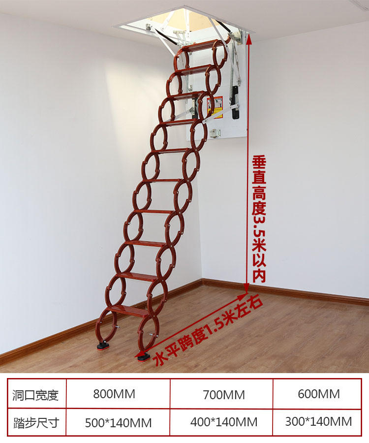 Thick attic retractable stairs household stealth ladder duplex manual stretch folding lift villa indoor ladder