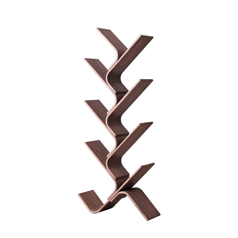 Creative bent wood leaning against wall bookshelves Black walnuts wood