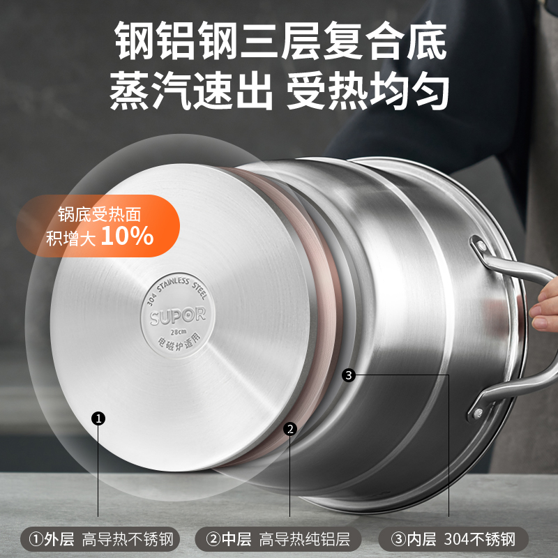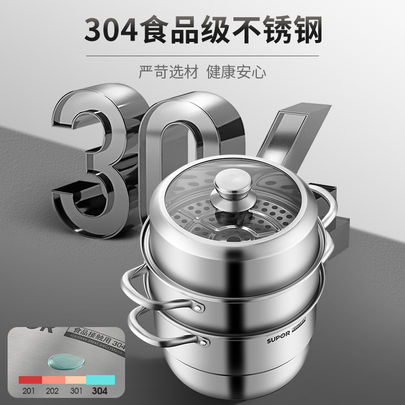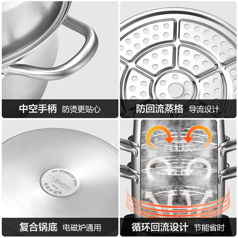 Supoir steamer Home 304 Stainless Steel Steam Cage Thickened Double 28cm Large Number of induction cookers Home Wastestoves
