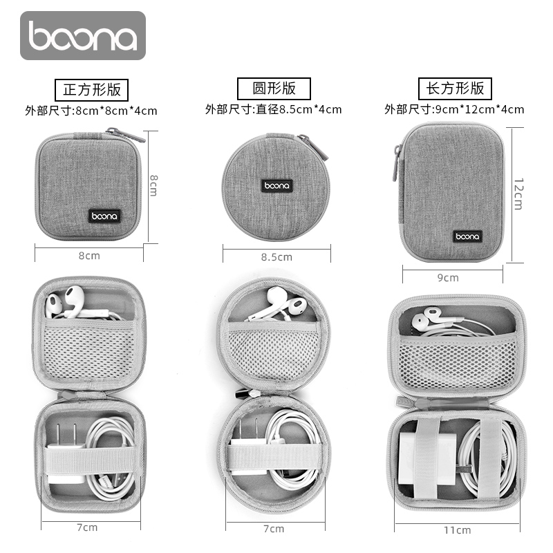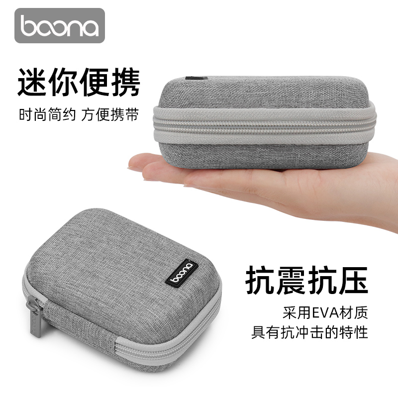 Baona earphone data cable storage bag box mobile phone charger net silver bluetooth headset box U-shield U-shield protective cover