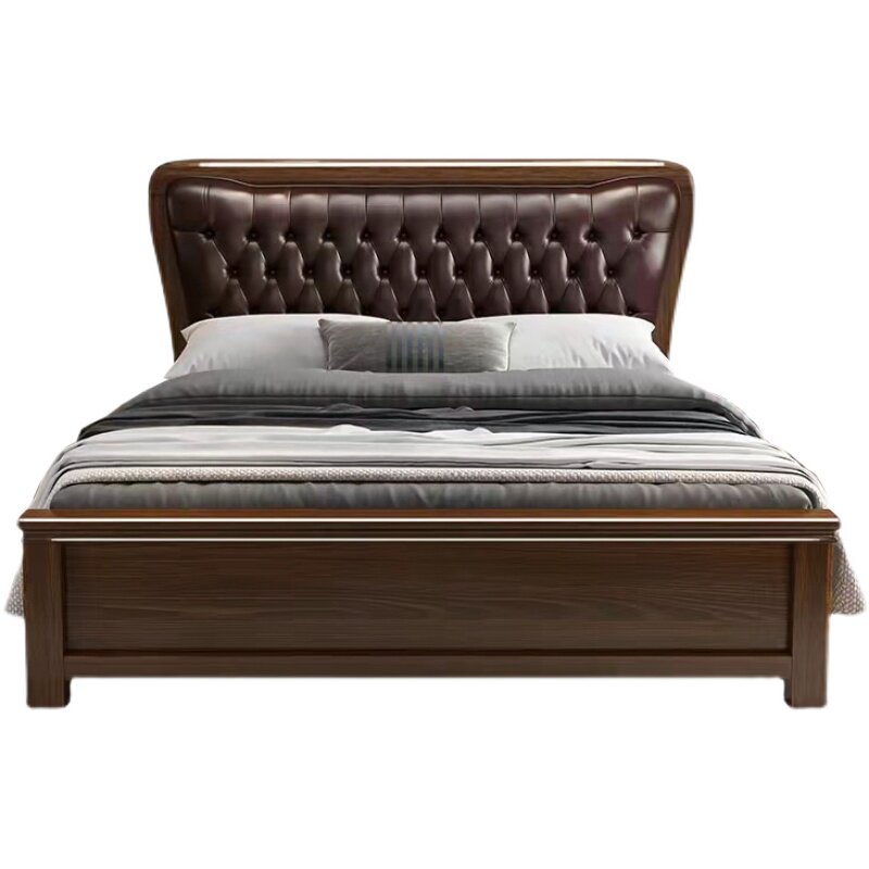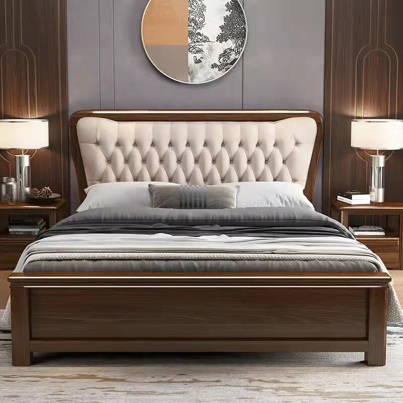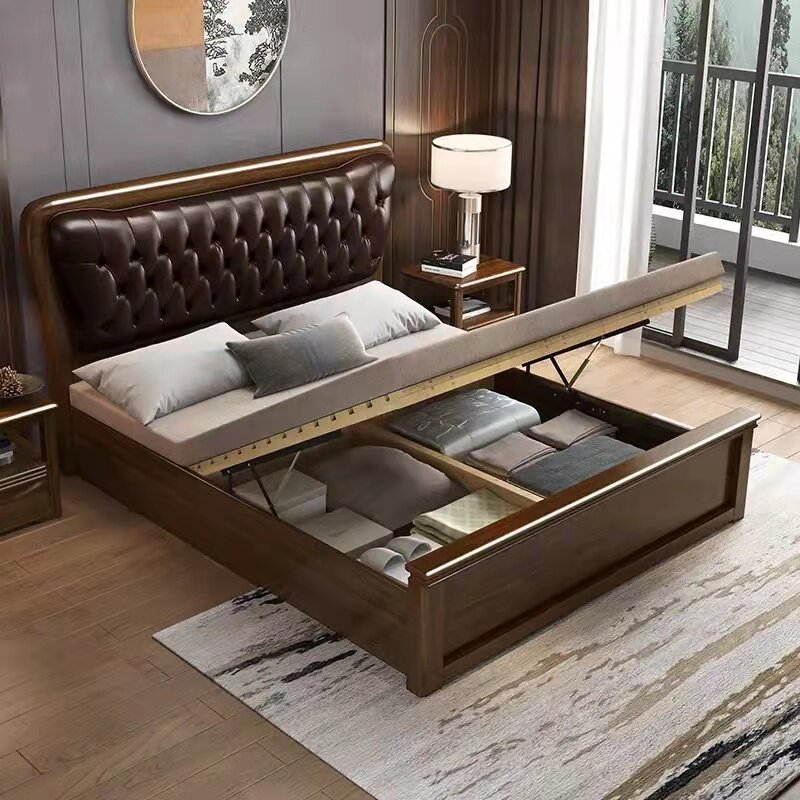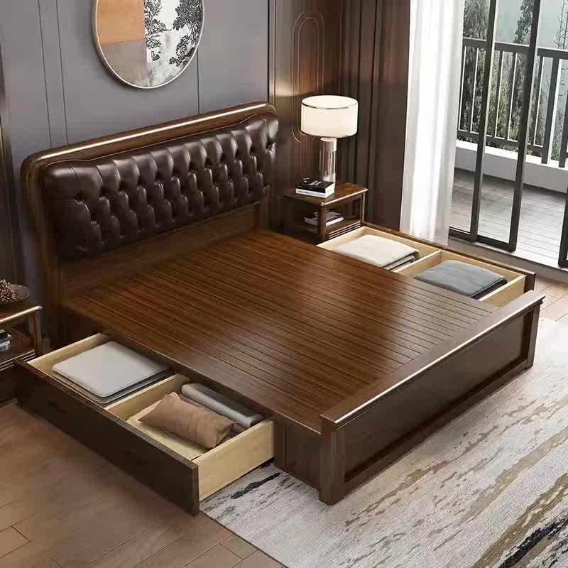 Solid wood bed 1 8m 1 5m Chinese walnut bed modern minimalist storage bed Master bedroom bedroom bedroom