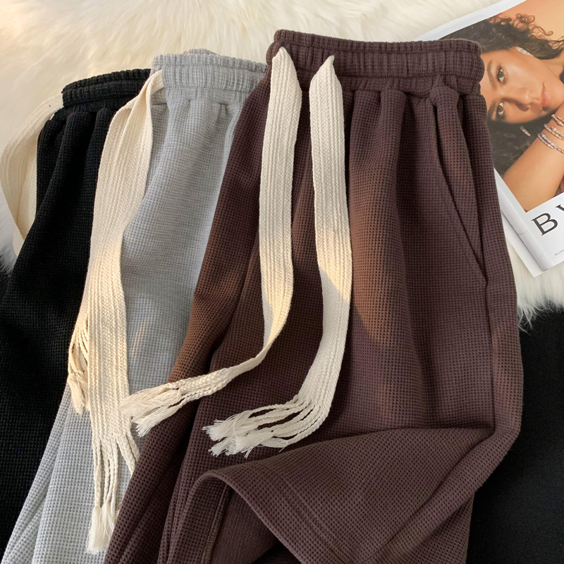 Huffag Shorts Men's Chains Tide Cards Draw Rope Weave 50% Sports pants Loose Texture Summer White Casual Pants