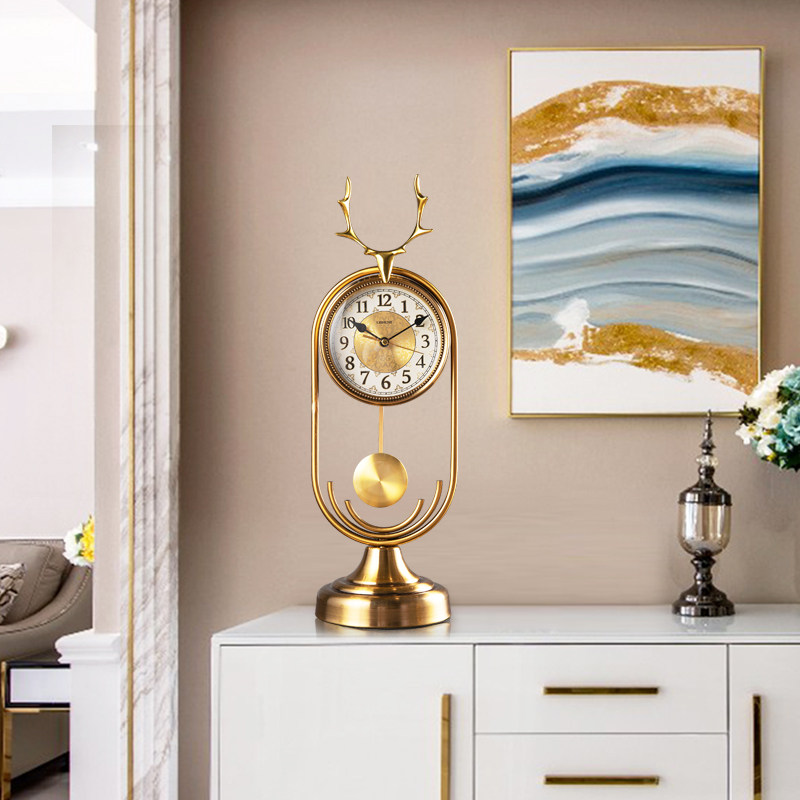 Eurostyle seat clock living room bedroom desk swing piece creative clock muted light lavish watch seat clock desktop home pendulum clock
