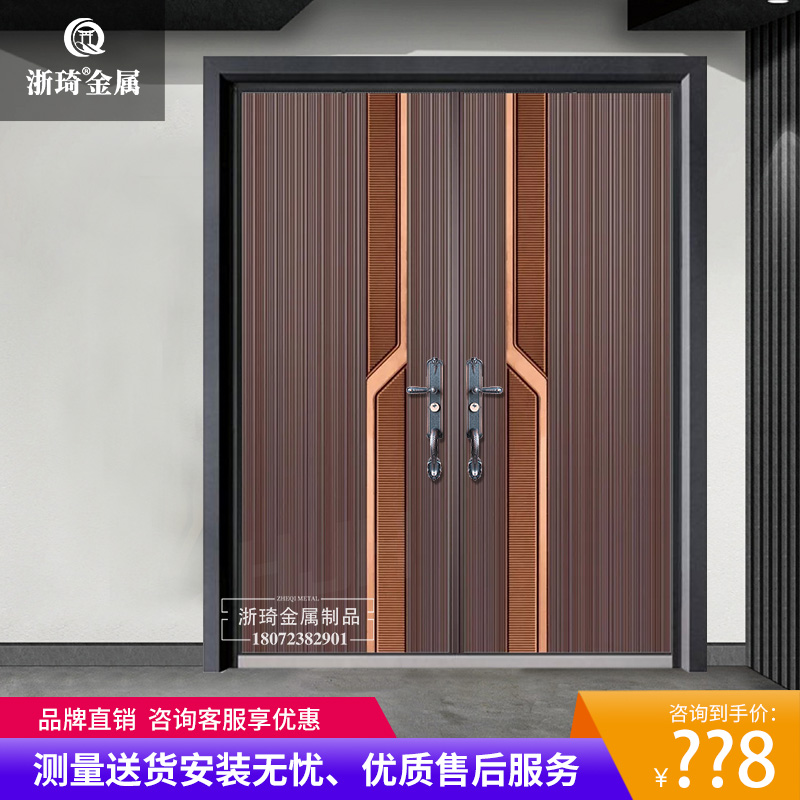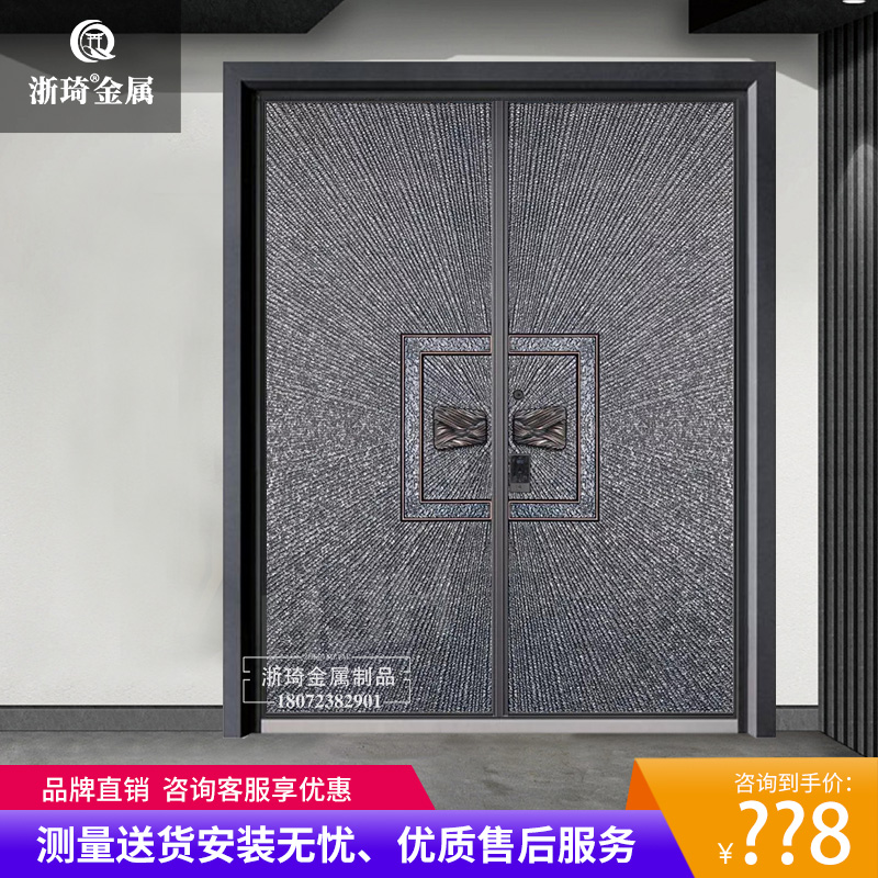 Cast aluminum villa door double door fingerprint lock anti-theft door rural self-built house household zinc alloy entry door customization