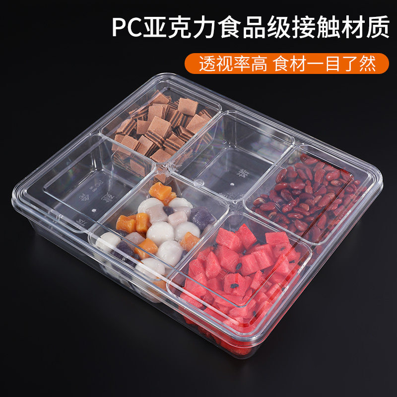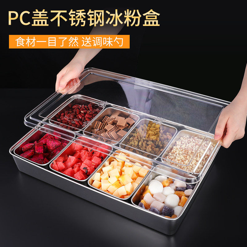 Food-grade PC material 6-grid ingredient box (food-grade PC material 8-grid ingredient box (stainless steel box body 6 grids recommended for stalls, stainless steel box body 8 grids recommended for stalls, all stainless steel 2 grids (send ingredients)