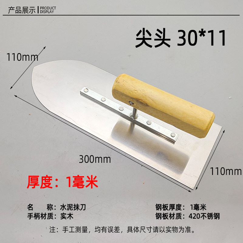 Stainless Steel Thickened Cement Mortar Trowel Tool Mending Wall Pointed Muddle Plastering Round Head Ash Knife Smear