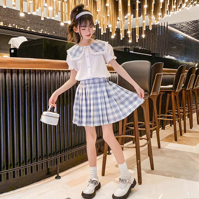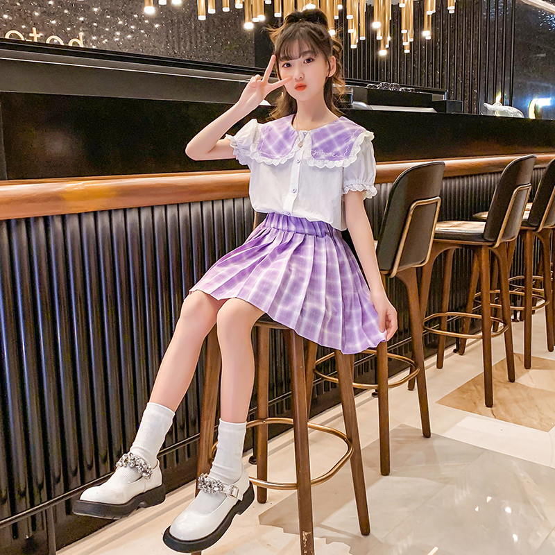 Girl Summer Clothing Trendy Children Jk Suit Dresses Big Boy Nets Red 2022 New Foreign Academy Wind Summer Two Sets