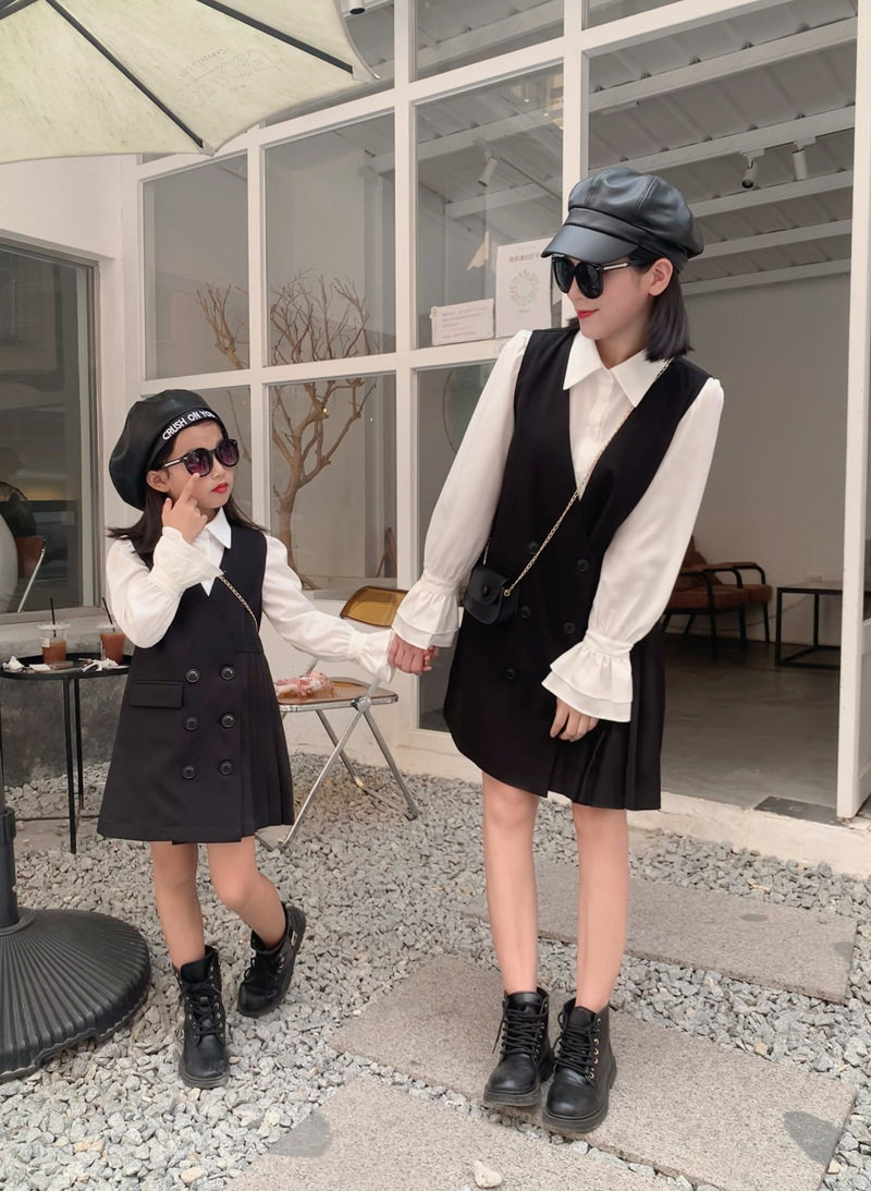 Parent-child wear autumn vest vest pleated college style suit dress girls shirt suit mother and daughter dress western style