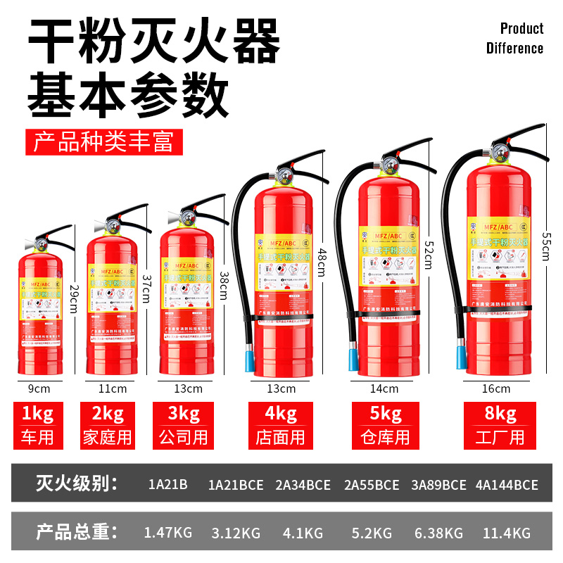 1kg VEHICLE FIRE EXTINGUISHERS 2kg CAR HOME FIRE EXTINGUISHERS 3kg HOME COMPANY WITH FIRE EXTINGUISHERS 4kg SHOP WITH FIRE EXTINGUISHERS 5kg WAREHOUSE WITH FIRE EXTINGUISHERS 8k