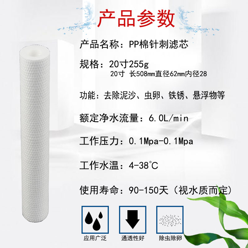 PP cotton filter 260 g 1 5 micron household water purifier 20 inch filter front for first stage needle
