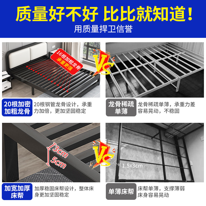 European iron bed double bed modern simple 1 8m 1 5 Princess bed soft bag bed rental room single iron rack bed