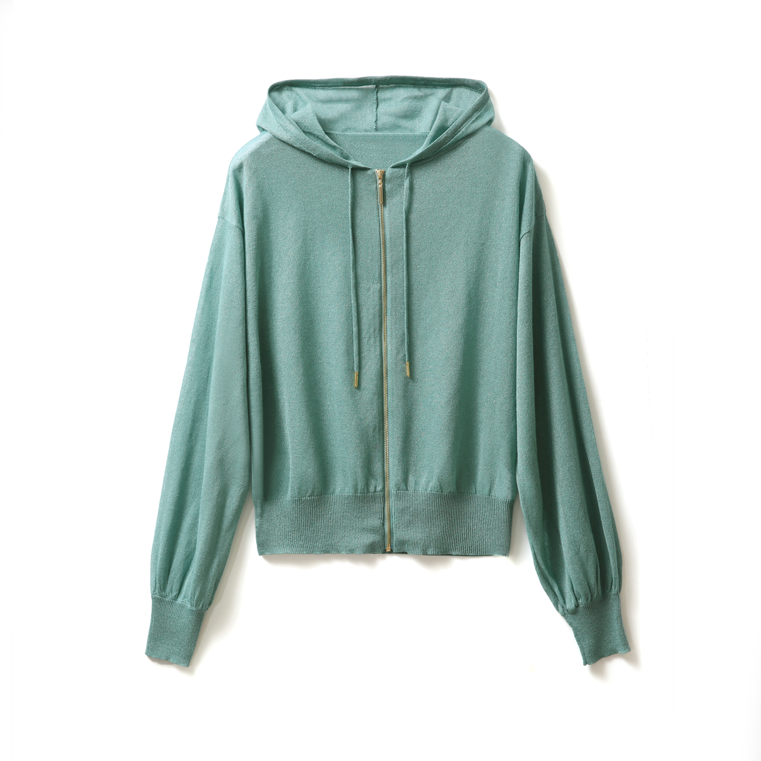 Jung Mei (ZZ0324758) spring and summer self-retention Qing Shuang 8 Color 16G knitted Lianhood lantern sleeve jacket