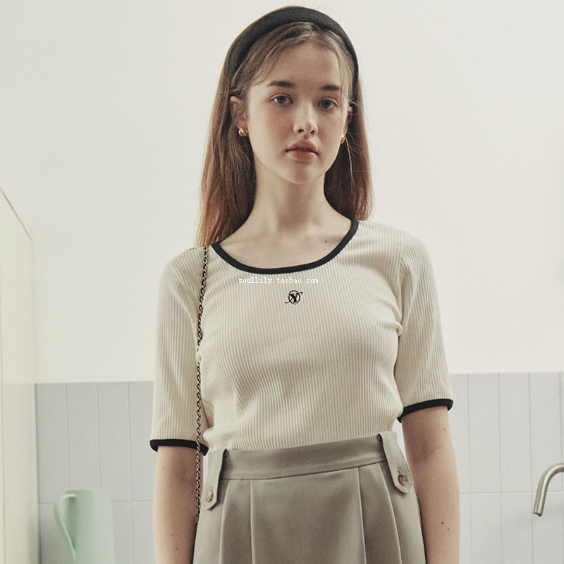 Korean yournamehere pure cotton top white embroidery round neck short-sleeved T-shirt women's summer dress 2022 new