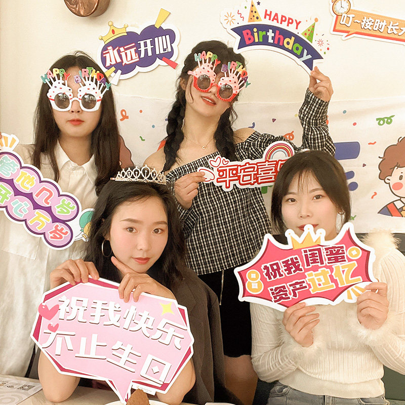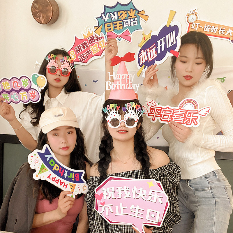 Birthday photo props in hand held a happy birthday kt plate sign atmosphere decoration scene arrangement party supplies