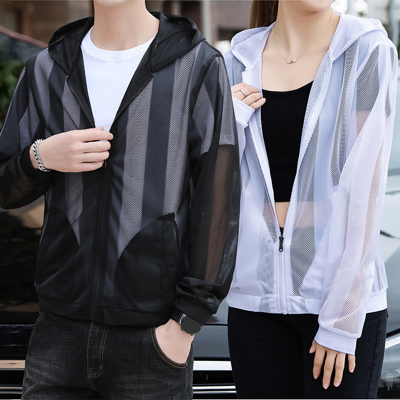 Summer men's sunscreen Anti-UV Lianhood Korean version couple thin and breathable mesh yarn hollowed-out speed dry coat tide