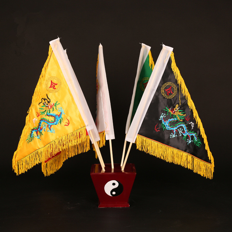 Wood Base 30 cm Five Square Flags 1 Set 50 cm Five Dragon Flags 1 Set 50 cm Five Square Flags 1 Set 30 cm Five Dragon Flags 50 cm Five Dragon Flags 50 cm Five Square Flags Stainless Steel Telescopic Rod (5 roots