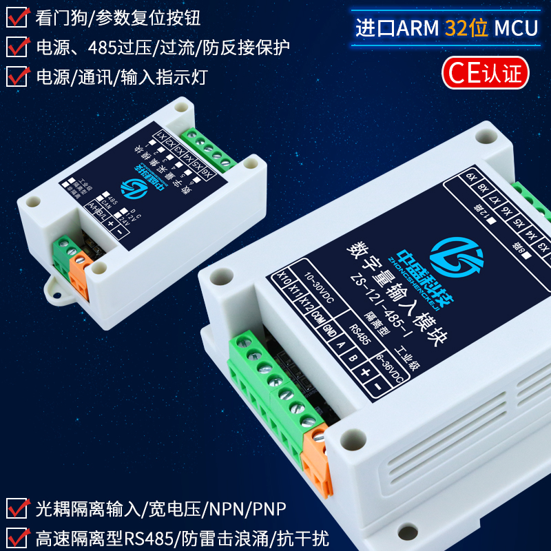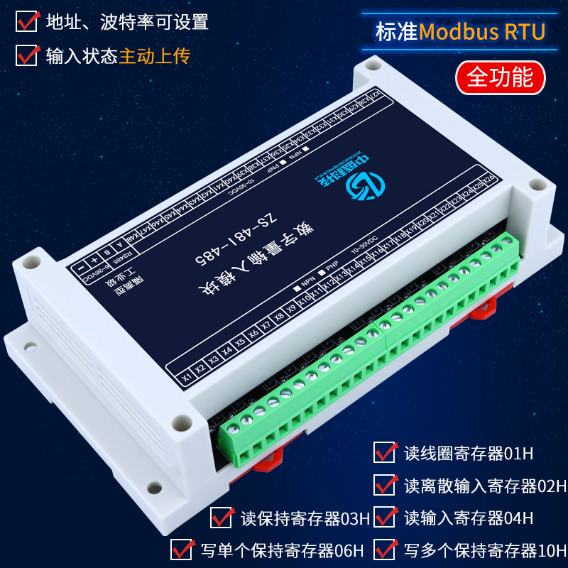 Zhongsheng digital switch input detection module 485 communication IO expansion board actively uploads Modbus