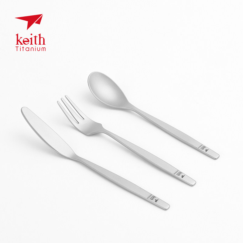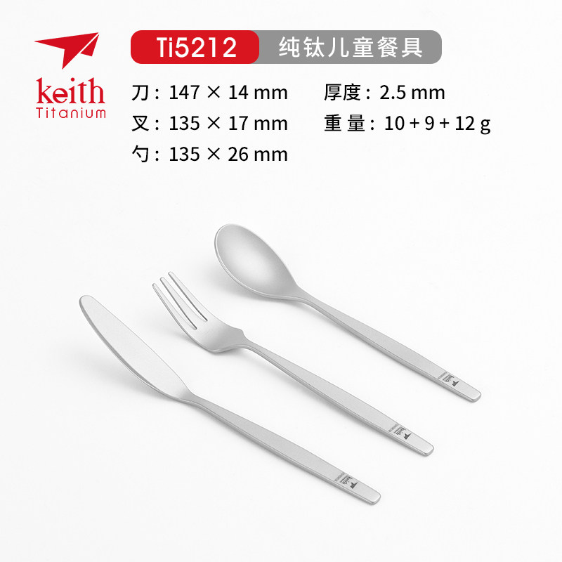 Keith Keith pure titanium tableware children's knife, fork and spoon three-piece outdoor home camping small portable set