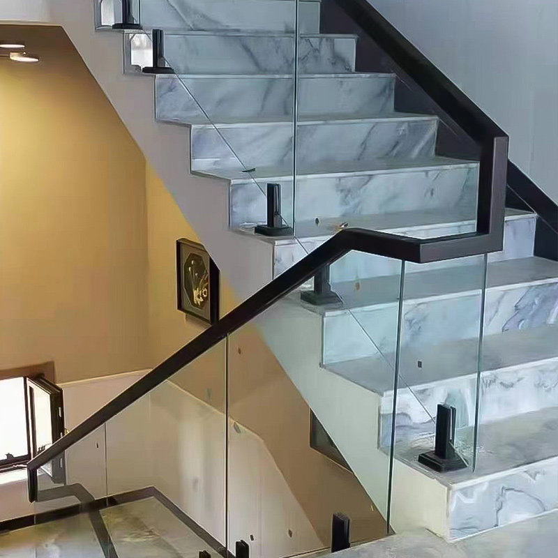 Glass staircase handrail guardrail card slot solid wood balcony floor light luxury slotted glass clip stainless steel swimming pool
