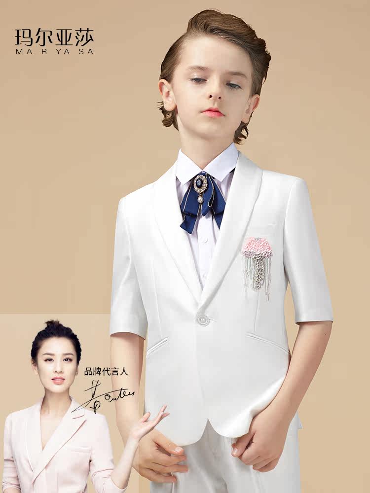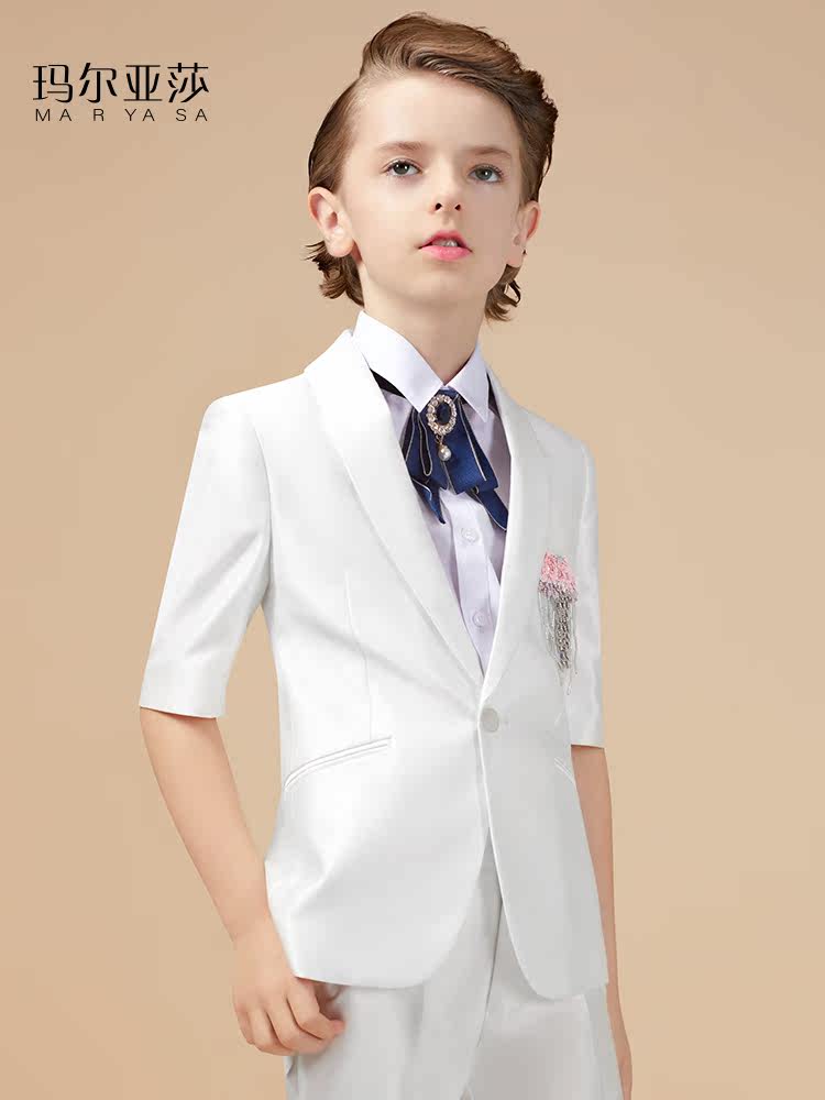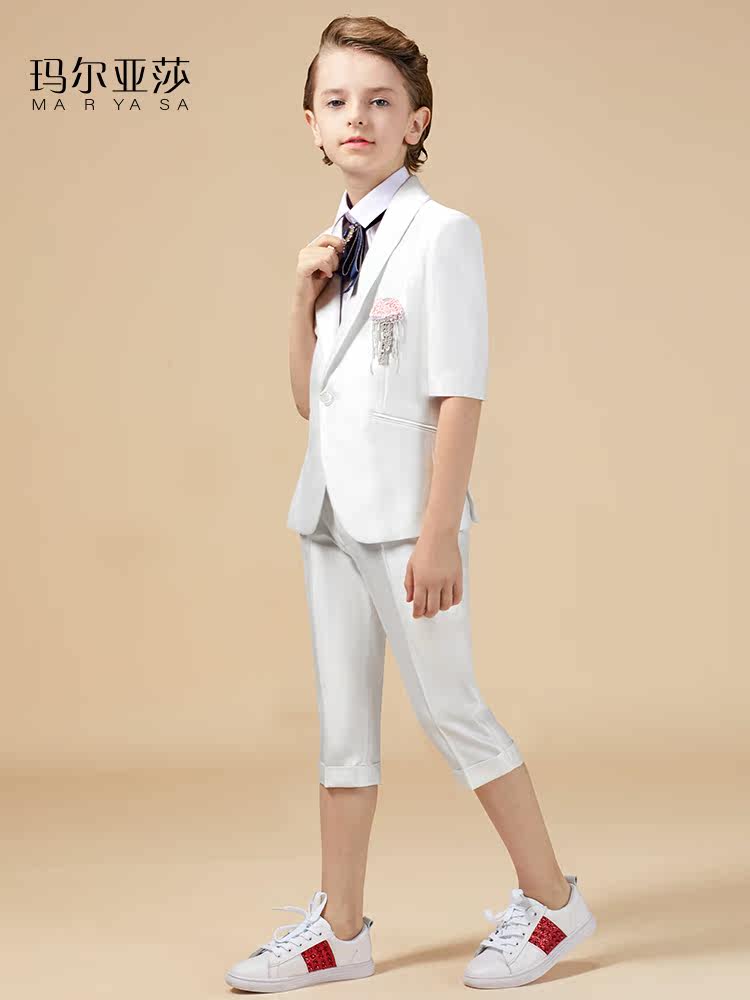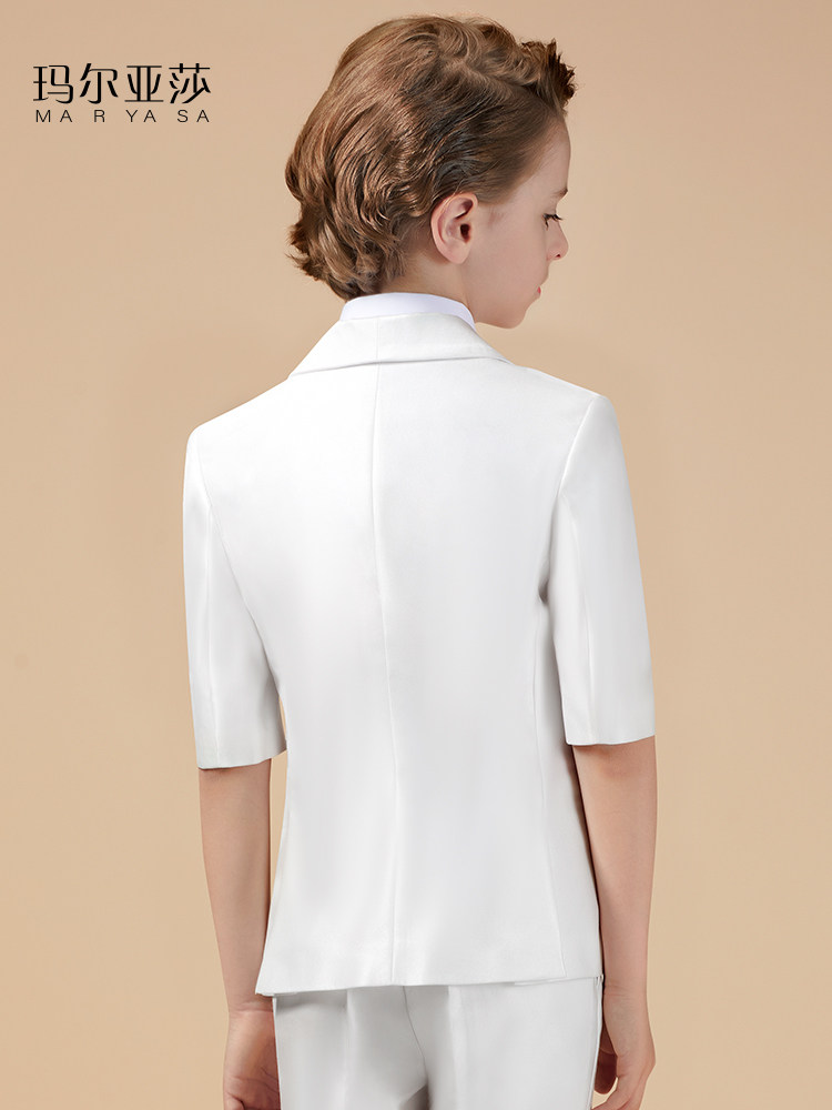 Boys' dress suit big children's summer short-sleeved catwalk piano performance costume flower girl suit wedding host suit