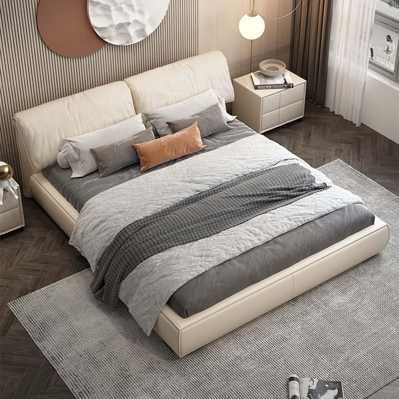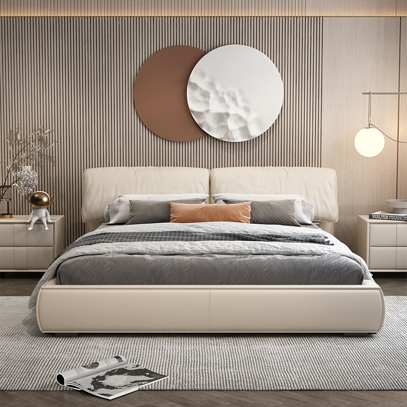 Bed (light luxury nappa leather) bed solid wood bedside table 1 bed solid wood bedside table 2 beds natural coconut palm mattress bed luxury latex mattress bed soft and hard double-sided mattress bed coconut palm mattress