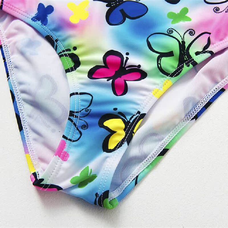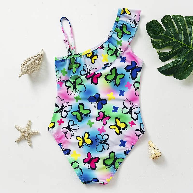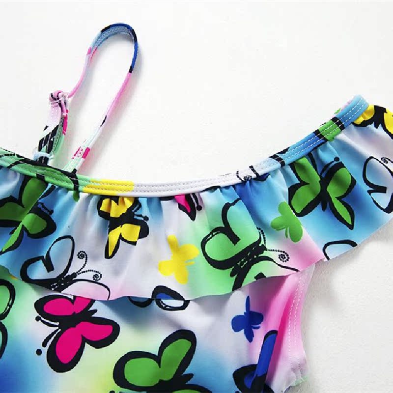 Foreign Trade Outlet Girl Swimsuit Girl Swimsuit Girl Cute Butterfly Printed Sloped Shoulder of lotus Children's swimsuit for children