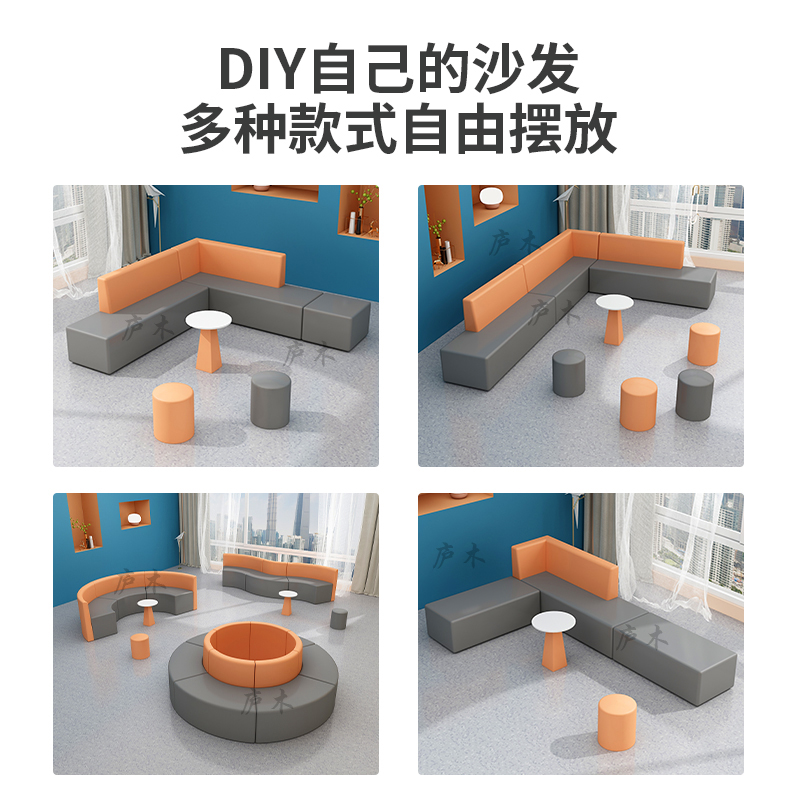 Coffee table (color can be customized) round stool, square stool, bench combination, one combination, two combinations, three in-line sofas, right corner sofas, and other customized sizes and styles