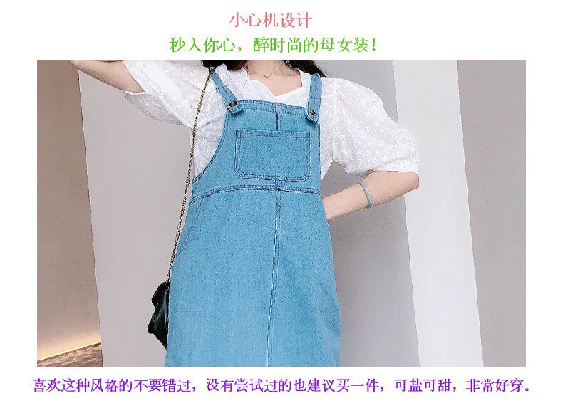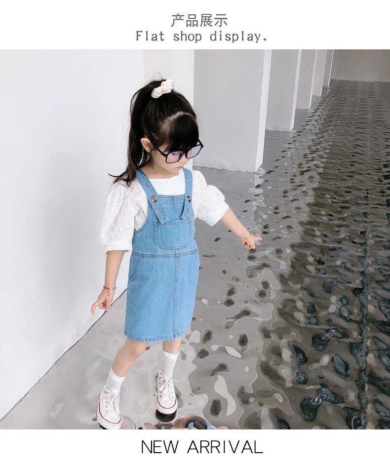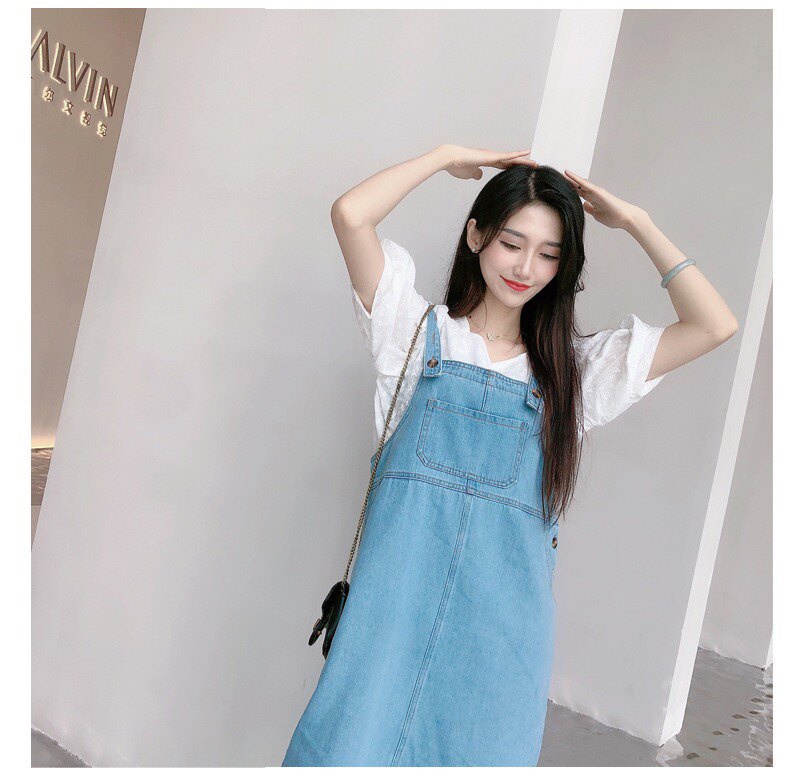White top denim strappy skirt