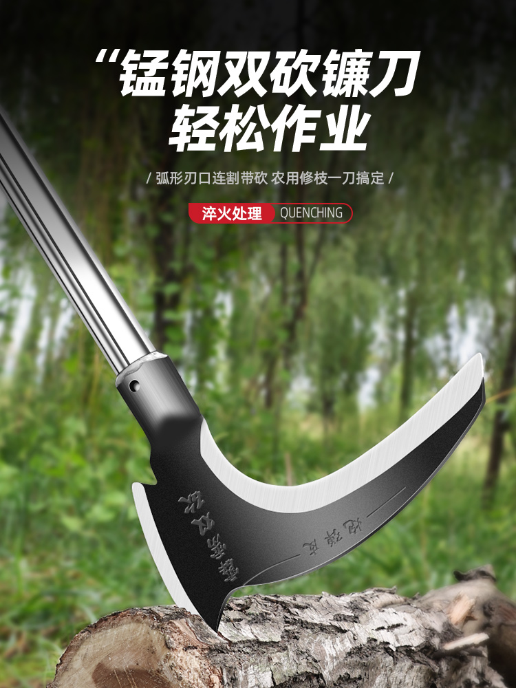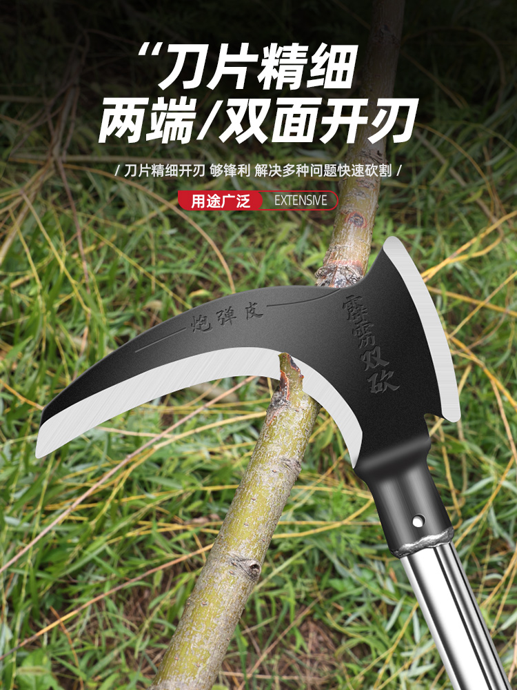 Sickle agricultural weeding cutting grass knife wood handle stainless steel cut grass with large and clean knife chopping wood dual-use quick and labor-saving machete knife