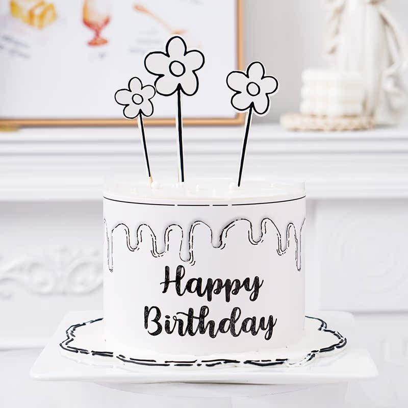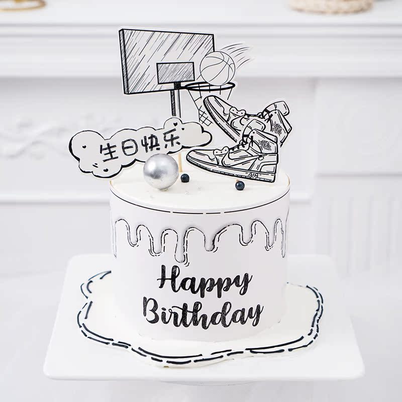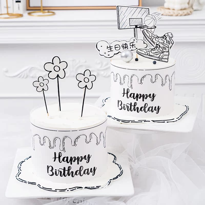 Net Red Secondary Meta-Happy Birthday with Peripheral Cake Dress Boy Birthday Cartoon Wind Black-and-white Line Sneakers Jack