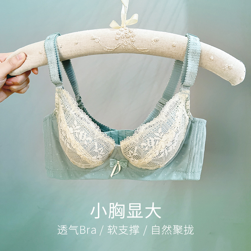 Eve's show lingerie women gather anti-sagging close nipple small bra soft steel ring V-shape wide shoulder strap lace edge