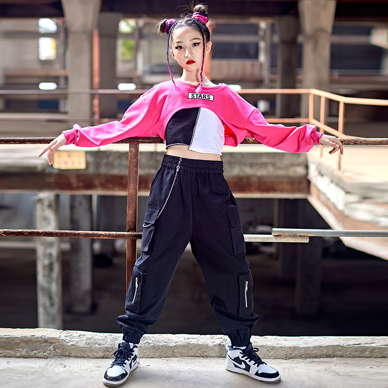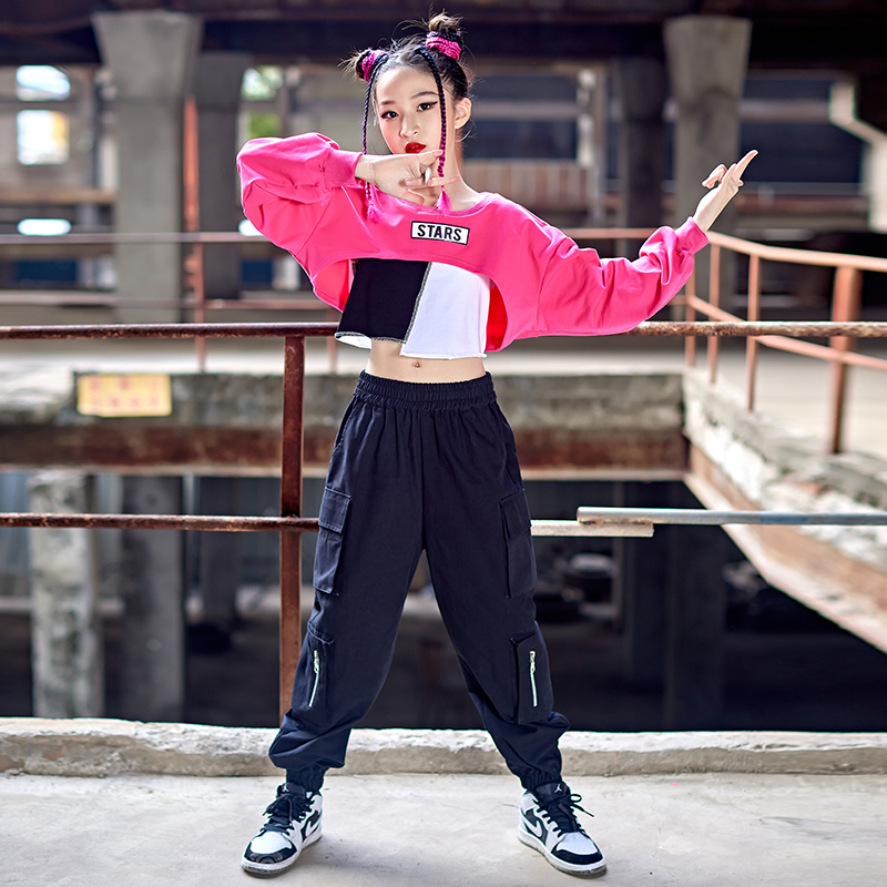 Children's Show Girls Jazz Dance Costume Hip Hop Street Dance Suite Performance Costume Pink Luff Luff Hiphop Costume
