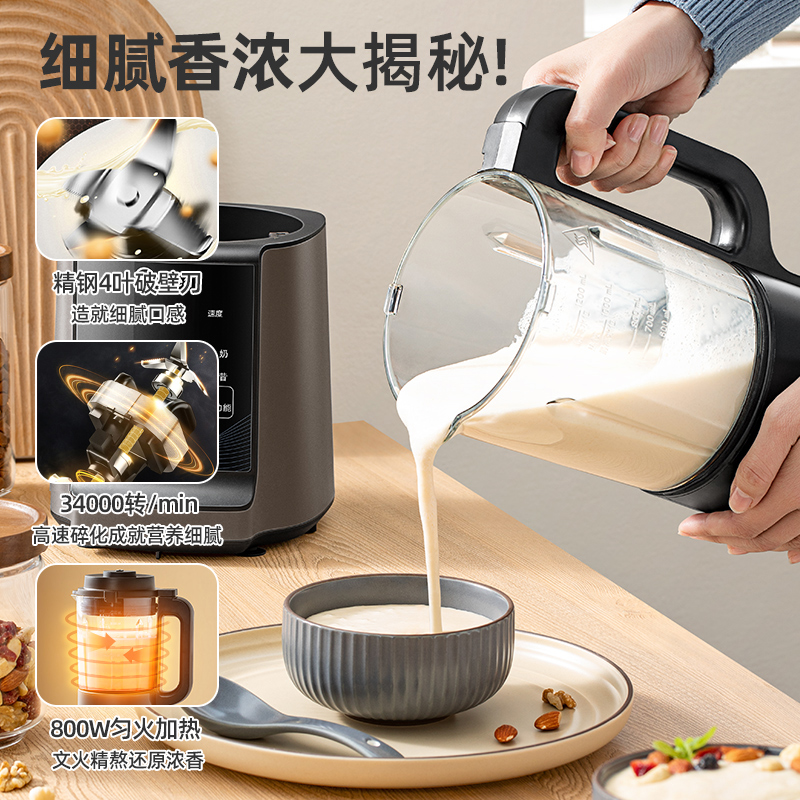 Midea wall breaking machine Household small soybean milk machine Grain juice blender fully automatic non-paste bottom easy to clean