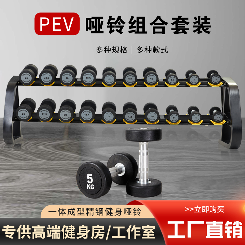 Round Head Fixed Dumbbells Tasteless PEV Fitness Room Special Commercial Pure Ladle Glue Dumbbells Men Fitness 5 10kg