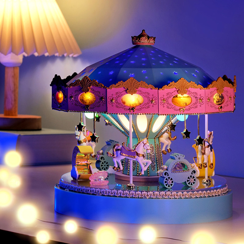 Children's Day Diy Handmade Cottage Model Rotating Trojan Music Box Eight-Octo Box Toys Gifts