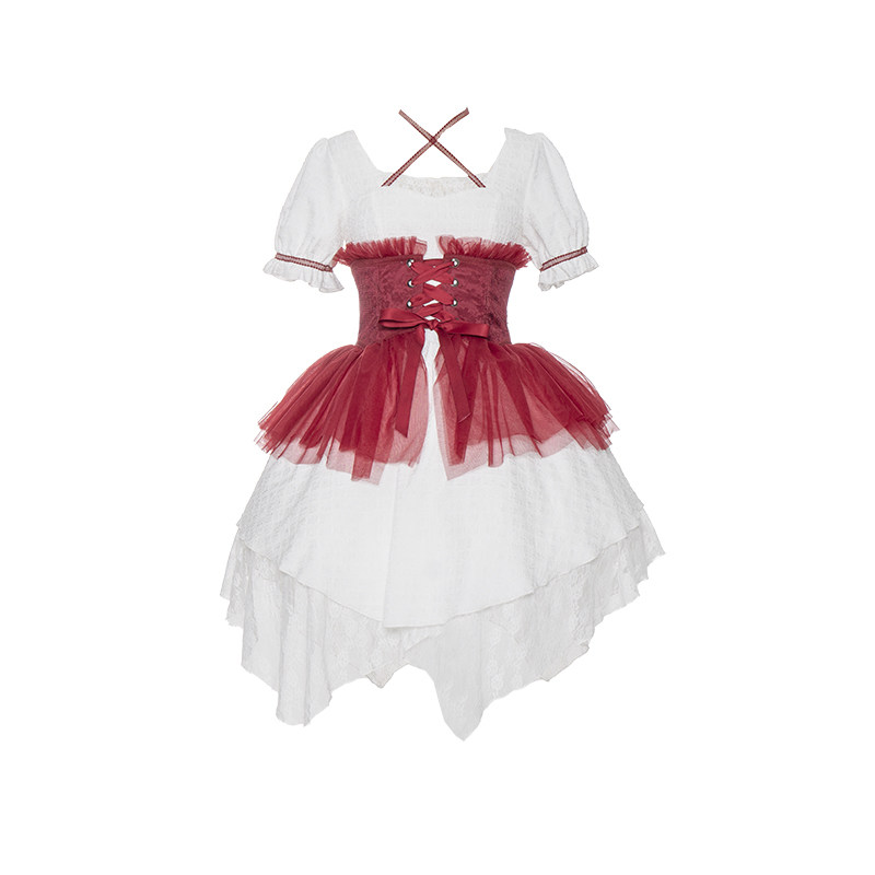 (Red Tide Op) Withpuji Original Design Irregular Skirt Hem Removable color waist seal hanging neck Fashion light lo
