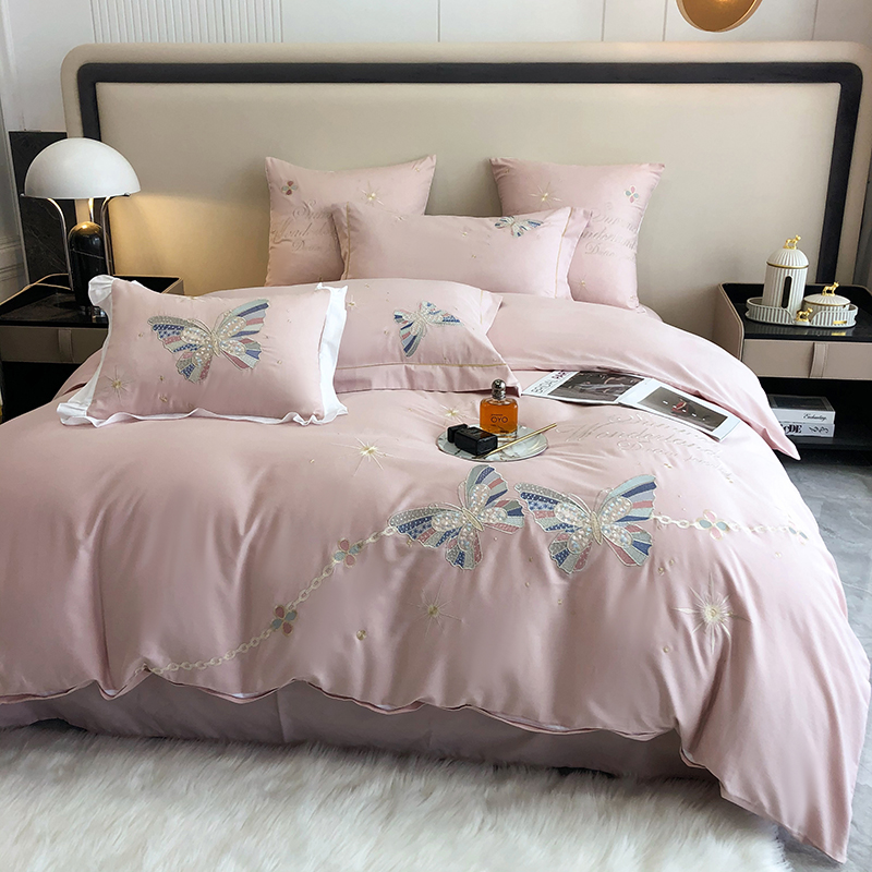 Mercury Home Textiles high-quality cotton twill four-piece bed set 100 cotton butterfly embroidery quilt spring and summer bedding