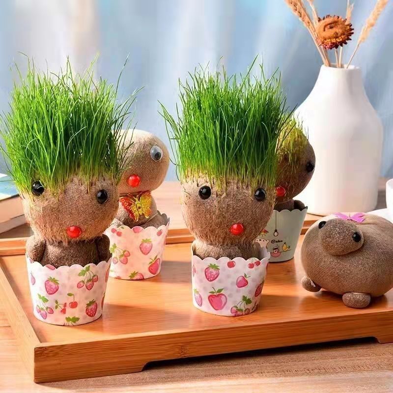 Shivering Creative Grass Head Dolls Small Plant Potted Indoor Tabletop Mini Christmas Presents Good Green Grass Cute